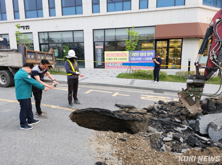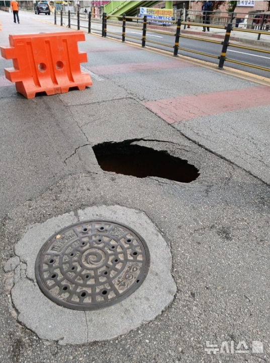 인천 서구 가정동 싱크홀 5월 31일 오후 3시경 인천 수거 가정동 서곶로에서 지름 1m, 깊이 1.5m 싱크홀이 발생되었습니다.지나가는 행인에 의해서 신고되었으며신고를 받은 즉시 응급 복구 작업을 진행하였으며이로 인한 차량 파손이나 인명피해는 발생하지 않은 것으로 파악됩니다. 현재까지 해당 싱크홀의 발생 원인은 하수관로 노수로 인한 것으로 보고 자세한 원인에 대해서는 조사 중입니다. 해당 싱크홀이 발생된 위치는현장 사진상 보이는 육교 및 주변 건물로 미루어한신그랜드힐빌리지 아파트 앞 도로로 추정됩니다.